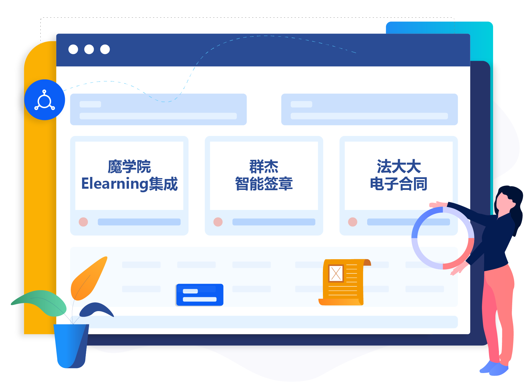 为企业提供丰富的协同(含OA)功能应用,提高员工办公能力及组织间协同能力。亮点功能如:门户管理、流程审批、组织主数据、会议管理、公文管理、文化建设、知识社区、目标管理等。