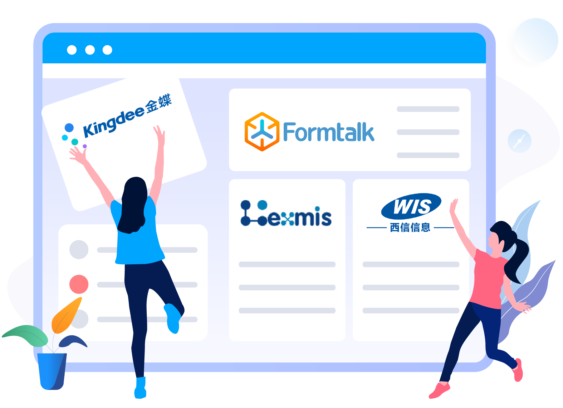 成熟的集成插件,快速连接ERP、HR、CRM、PLM、BI等系统,可实现主数据统一、消息/待办统一、门户统一、业务流程统一、业务报表统一、身份认证统一等。