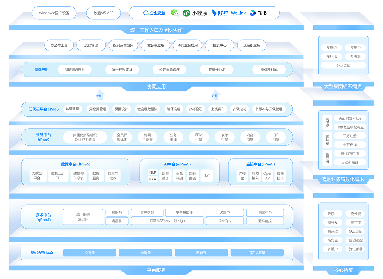 基于新一代开放的云原生、数字AI技术,打造覆盖全员的一体化平台