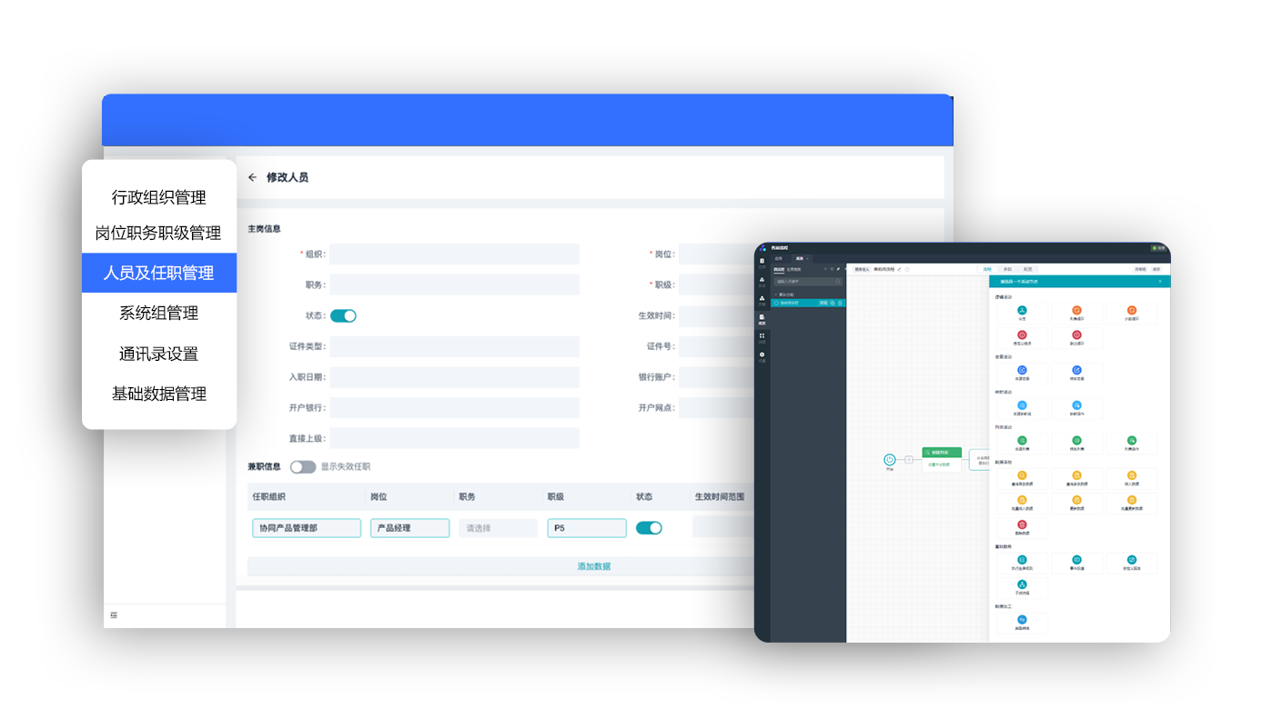 通过智能化、可视化、轻量化的设计,快速定制随需应变的组织模式业务应用,提升应用扩展和业务复用能力。
