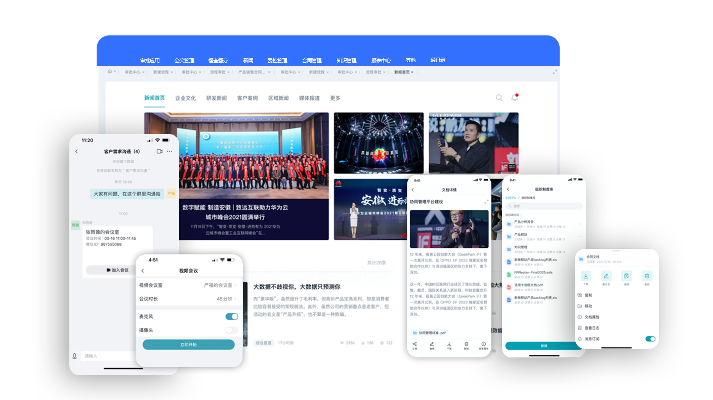 团队协作智能会议新闻公告档案管理文档协作日报周报