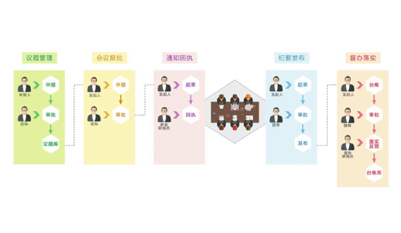 针对政府办会应用场景设计,通过信息化手段固化政府会议管理全流程,覆盖议题收集、会议方案、会议通知、参会反馈、会议提醒、会议纪要等政府办会各个环节,同时与公文管理、督查督办等功能打通,实现会前、会中、会后的全业务链一体化管理,提升会议组织与管理的效率。