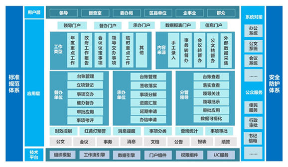 系统功能设计安全、灵活、操作便捷。既满足了用户公文流转、事项处理等日常办公需要,提升了日常办公效率。并且基于实际业务需要,拓展开发了事项督办等特色功能应用,提升了领导及各工作部门对各项工作的监督、检查效率。