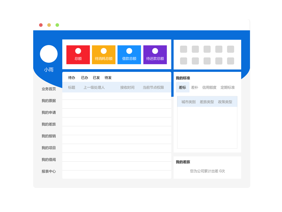 以人为中心,实现专属门户配置,通过深挖费用管理业务逻辑,为企业不同角色打造符合职能场景专属门户,人人操作顺畅,业务一触即达。