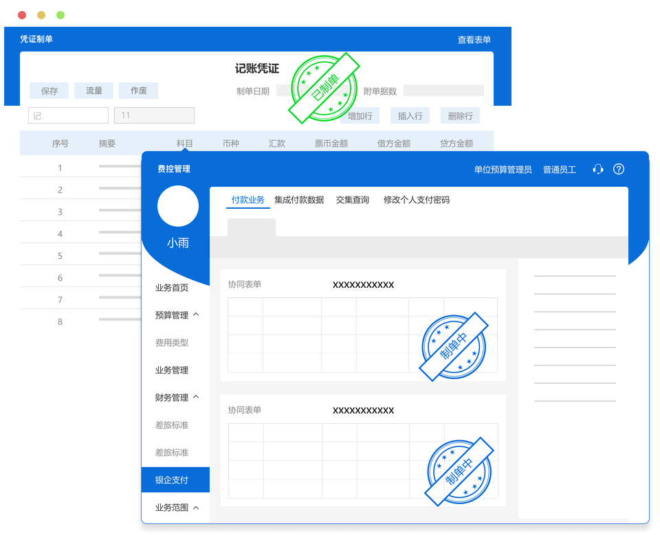 融合协同、费控、财务系统,集预算、报销、票据、商旅、银企直联、ERP凭证、电子会计档案于一体的深度整合,业务与财务互通。