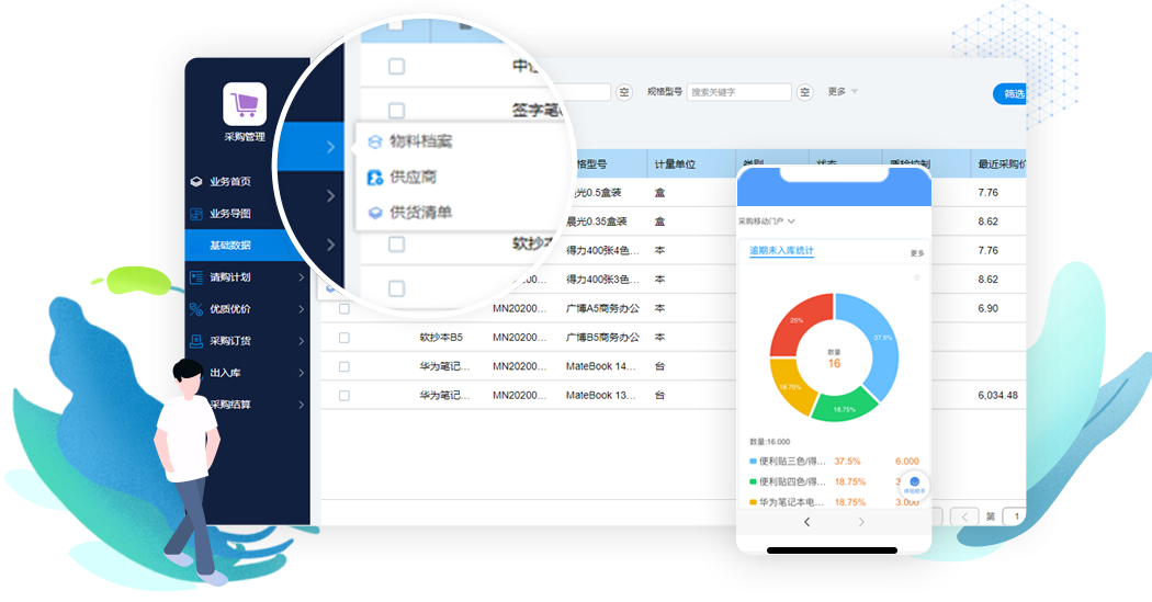 采购数量庞大,采购统计难,无法快速统计采购相关数据