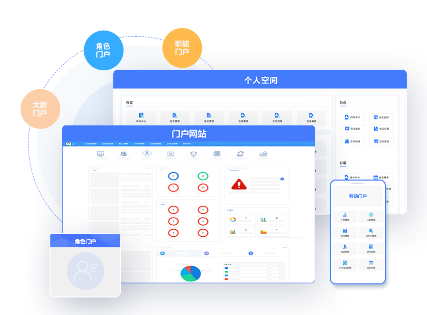 聚合展现所有协同工作与资讯,支持分层级、分单位、分角色的门户管理方式,支持个性化定制门户风格,更直观、更具体。