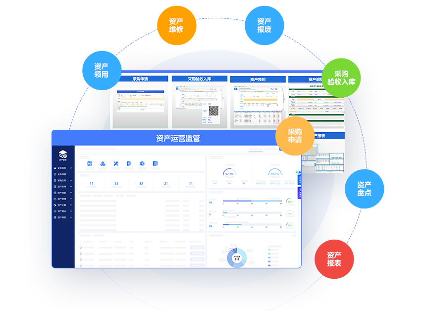建立全资产轻量”管理+监督“双向协同模式,加强和改进资产管理,覆盖资产管理全生命周期,提升资产使用效率。包含了对固定资产、无形资产、低值易耗品全量资产。